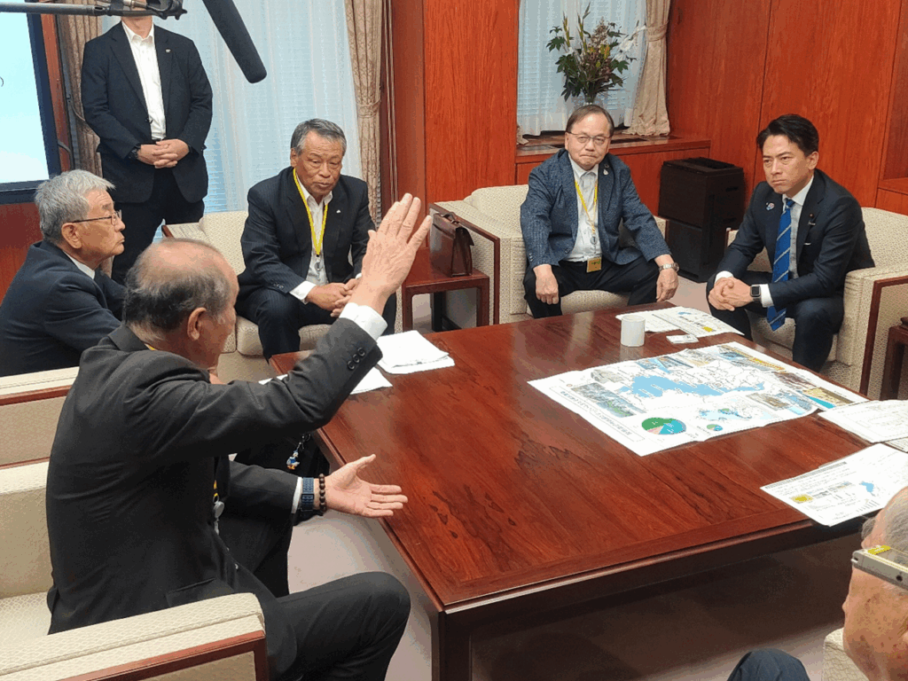 JAグループ滋賀と県農政連盟、県農協青壮年協議会は、9月17日に東京霞が関の農林水産省大臣室で小泉農相と今後の滋賀県農業の振興についての意見交換を行いました。
