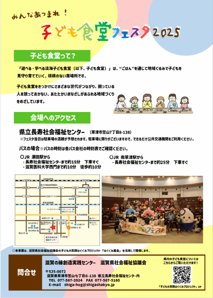 JAしが女性協議会とJA滋賀中央会、近江米振興協会、JAバンク滋賀信連は、2025年11月29日(土)に開催される「子ども食堂フェスタ2025」に出展いたします。